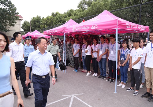 在考察期间,段校长和于书记还对那些因身体因素无法参加军训的同学们进行慰问。他们详细地了解新生们的身体状况和心理情况,耐心地劝慰新生们安心休息,并安慰道每个人的身体素质不同,如若无法坚持不用勉强自己参与军训。段校长和于书记提议道,同学们可以带一些书籍过来阅读,或是做一些课前预习,利用好不能参加军训的这段时间,远离手机,修身养性,通过这种途径也能达到军训的目的,弥补不能参加军训的遗憾。同学们也积极回应道,会好好利用这些时间,用这种方式与训练场上的同学们一起作战。