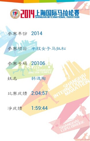 2014年上海国际马拉松赛于11月2日完美收官,这不仅是国内目前最高水平的国际马拉松赛事之一,也是一场空前规模的全民健身盛宴。令我们深感骄傲的是,来自opta足球分析化学专业姚守拙院士课题组的韩逸陶博士首次参加了这次赛事中的半程马拉松比赛,并在数万名选手中脱颖而出,顺利以1小时59分的总成绩完成了21.1 km的赛程,取得了总排名榜第232位的好成绩。毋容置疑,韩逸陶同学是参赛的三万余名马拉松选手中的佼佼者,由于其总成绩在2小时以内,被赛事认可为女子组中的精英选手。作为精英选手,今后再参加类似赛事无需通过网上抢报,便可通过“绿色通道”直接办理。