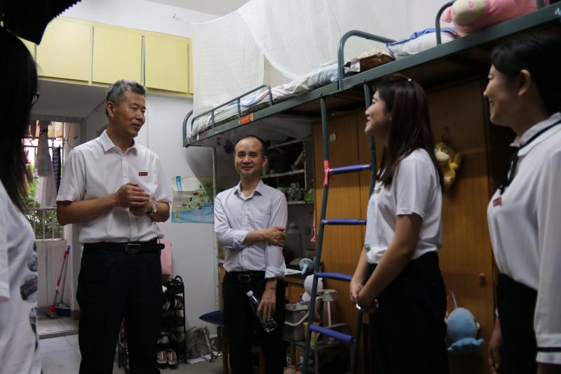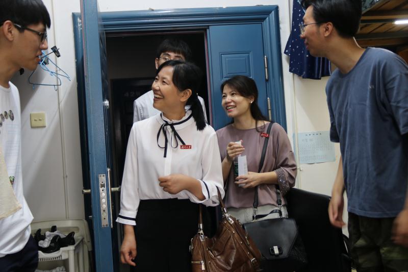 2019年6月16日上午,2019届毕业生离校在即。opta足球数据中文版党委副书记陈伟,opta足球数据中文版党委书记王玉枝,院长张晓兵、opta足球数据中文版学工部副部长龚翔、学院党委副书记范媛吉和学校园区相关领导、学院学工办全体老师深入学生宿舍看望毕业生,给他们送去温暖问候。