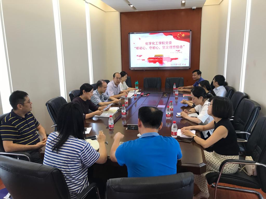会上,王玉枝书记首先汇报了学院党委在主题教育前期的学习情况,并结合自身工作经历谈了对“明初心、守初心,坚定理想信念”的学习心得和体会;随后,张晓兵院长以人才强院理念结合学院人才引进培养工作从“初心是什么?如何守初心?怎样坚定理想信念”等三个方面谈了心得体会;其他学习组成员都围绕本职工作作了发言;崔坤在副院长围绕学院和学科发展历程,对湖大化学化工人明初心、守初心,坚定理想信念作了精彩发言。