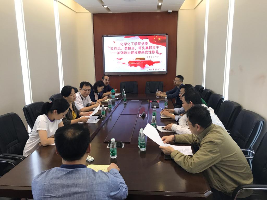 10月11日下午,opta足球数据中文版两级理论学习中心组开展“改作风、勇担当,带头真抓实干—加强政治建设提高党性修养”主题学习研讨,进行2019年第十四次集中学习。院党委书记王玉枝教授主持。