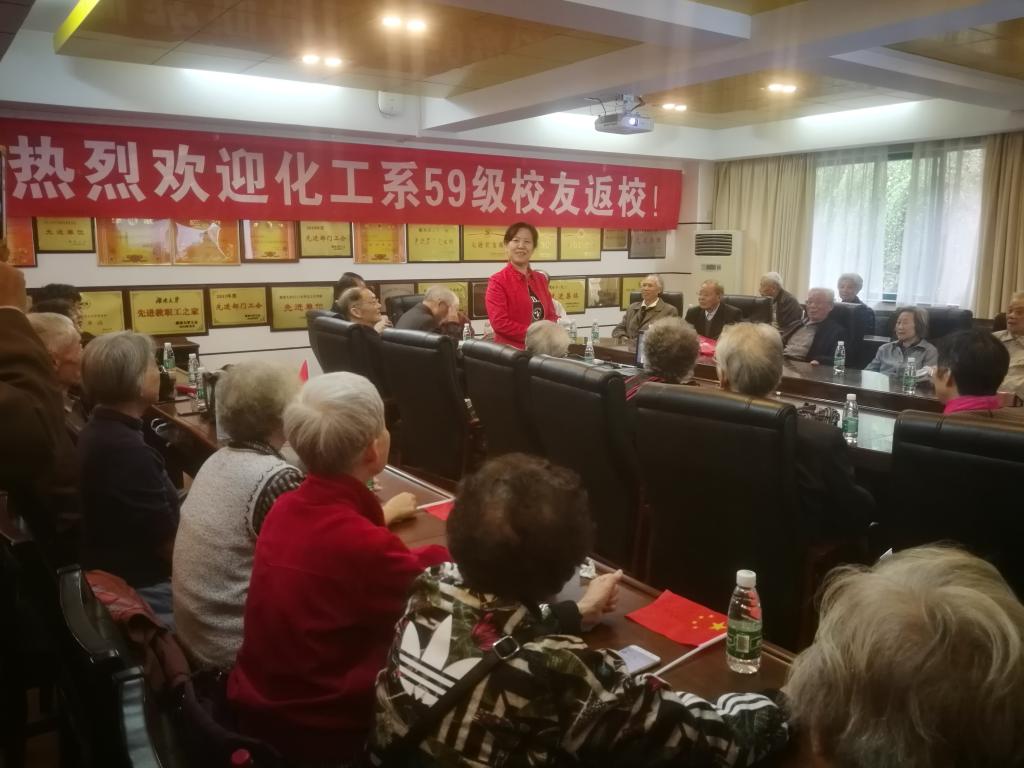金秋十月,丹桂飘香,opta足球化工系59级30多位校友不顾高龄路远从各地齐聚母校,隆重举行纪念入学六十周年聚会。10月12日在opta足球数据中文版新楼D区二楼会议室举行了隆重的纪念大会,opta足球数据中文版党委书记王玉枝教授及原化学化工系主任张志华教授等领导出席,原化工系59级授课教师朱云生、曹声春、王昌贵、杨礼嫦、刘觉民等老师应邀参会。