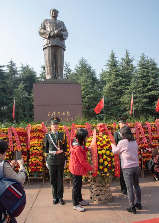 抵达韶山后,全体党员怀着崇敬和激动的心情到毛泽东铜像广场,迈着整齐的步伐,沿着瞻仰大道,缓步拾阶而上,在毛主席铜像前肃立致敬,举行敬献花篮仪式,学院党委书记王玉枝和副书记范媛吉共同整理花篮上的缎带。接着,全体党员面对鲜红的党旗,在毛泽东同志铜像前重温了入党誓词,追寻和感悟“初心与使命”的深刻内涵。随后,大家逐一参观了韶山毛泽东同志纪念馆内的中国共产党成立、秋收起义、红军长征、抗日战争、建立新中国等展区,一张张图片、一段段历史,让大家体会到了主席波澜壮阔的一生。在毛主席故居,大家领略故居的秀美和岁月的记忆同时,了解主席成长历程和伟人家风传承,深刻理解“孩儿立志出乡关,学不成名誓不还”的雄心壮志和“为有牺牲多壮志,敢教日月换新天”的无私奉献精神。
