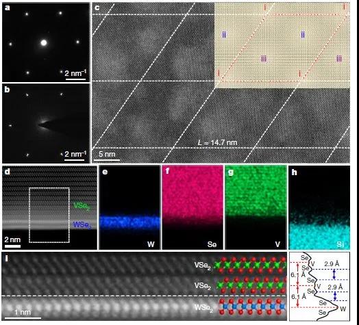 VSe2/WSe2范德瓦尔斯异质结构的电子显微学表征。