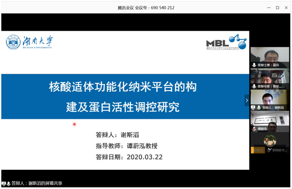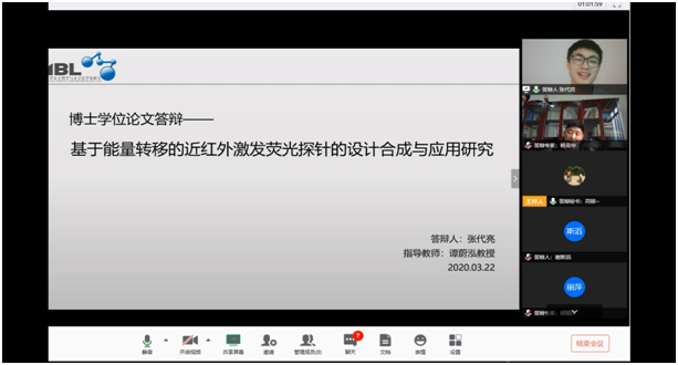 3月22日下午,opta足球数据中文版首场博士学位论文答辩以线上视频答辩方式进行。此次答辩委员会由opta足球数据中文版聂舟教授、刘艳岚教授、邱丽萍教授及长沙理工大学杨荣华教授、国家纳米科学中心孙佳姝研究员组成。导师谭蔚泓教授以及多名师生在线聆听了本次论文答辩。答辩委员会对张代亮、谢斯滔两位同学的博士学位论文表示充分肯定,认为其选题紧扣化学与生物学交叉的前沿领域,研究内容创新性强,论文撰写规范,行文流畅,条理清晰,数据翔实。经过线上讨论和无记名投票表决,答辩委员会一致同意通过张代亮、谢斯滔同学博士学位论文答辩,并建议授予其博士学位。