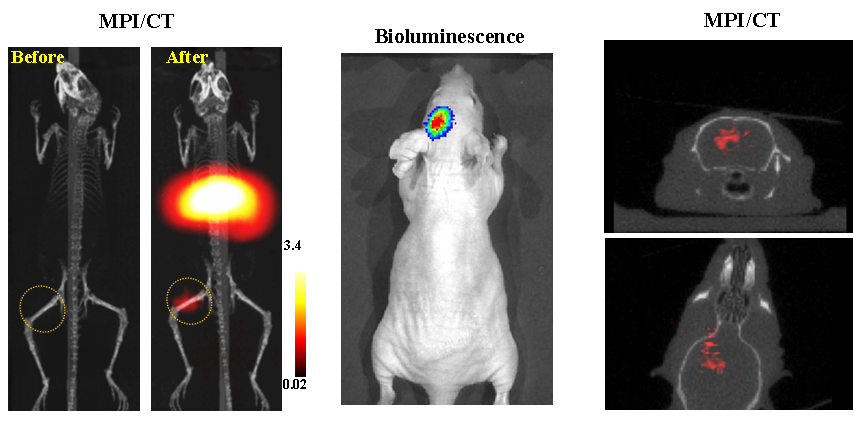 今年二月份,宋国胜教授与斯坦福大学饶江宏教授合作,通过系统的研究获得了影响磁性粒子成像信号的作用规律和关键原理,开发了新型磁性粒子探针---FeCo合金粒子,并首次应用于磁性粒子成像(MPI)。该造影剂在极低含量时(5 ng)仍具有很强的造影效果。这意味着,未来在进行人体成像时,可以使用更小剂量的造影剂,从而避免高剂量造影剂引起的肾肝损伤。基于MPI的直接成像原理,我们可以对造影剂进行正相和无背景干扰的活体成像,极大地提高信噪比。这项技术为肿瘤早期诊断、癌细胞示踪、脑中风、药物输送治疗、肺部灌注成像、胃肠出血、神经退行性疾病、磁热治疗等在活体中的可视化研究,提供了强有力的手段。相关研究成果以opta足球数据中文版为第一单位发表在Nature 子刊《Nature Biomedical Engineering》。该期刊是“生物医学工程”的顶级期刊。宋国胜教授为该论文的共同通讯作者。