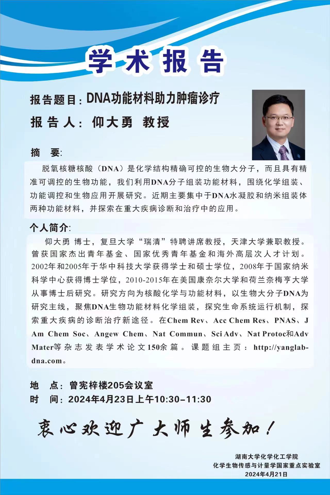 2024年4月23日复旦大学仰大勇教授学术报告会